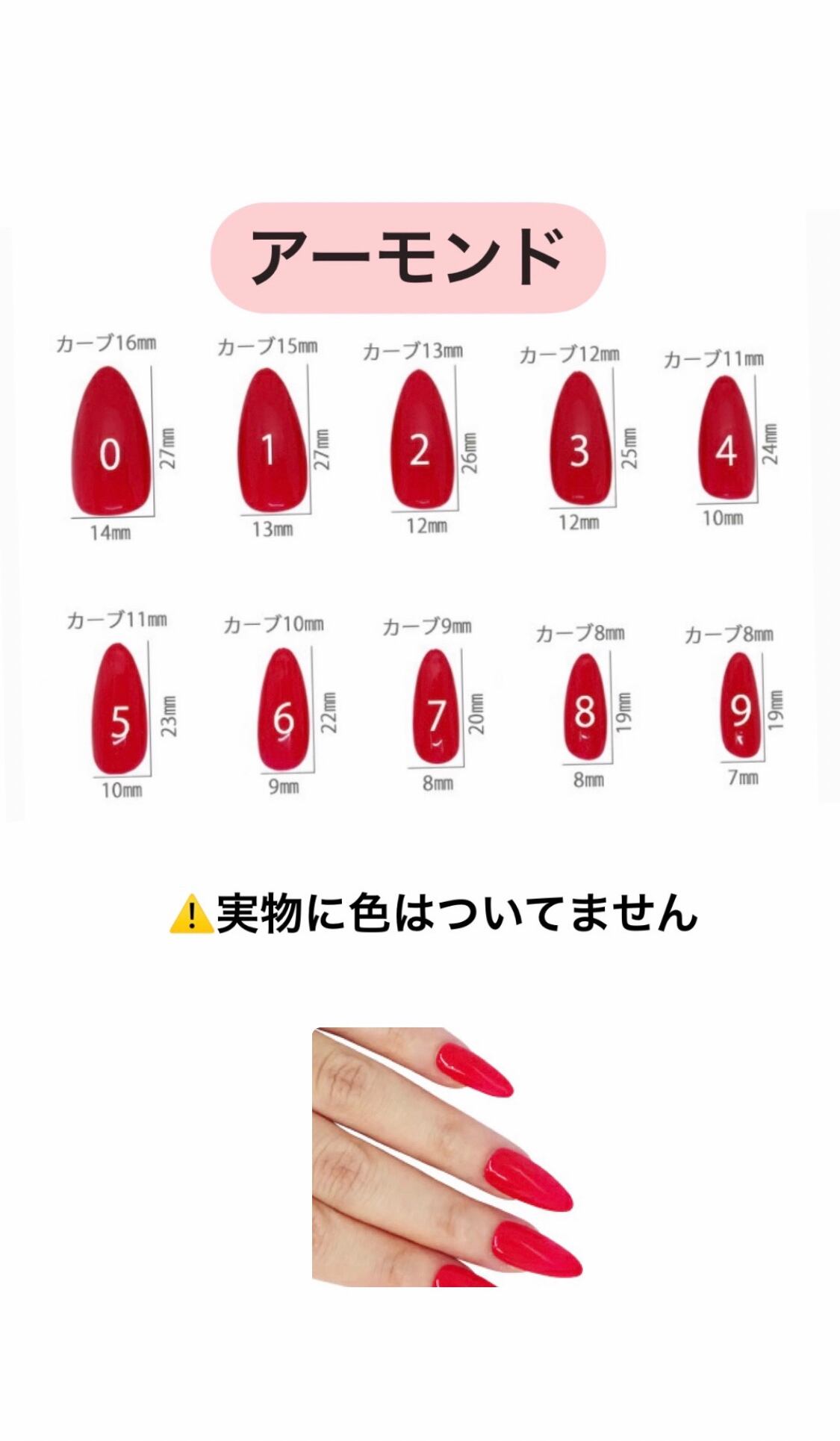 必ず柔らかいメジャーでお爪の端に0を合わせきっちりお計り下さい。